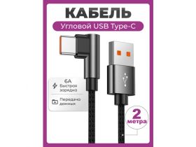 Угловой кабель USB Type C быстрая зарядка 6A 66W 2 метра, нейлоновый провод USB Type-C шнур 2 м 4384862563