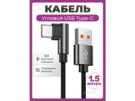 Угловой кабель USB Type C быстрая зарядка 6A 66W 1,5 метра, нейлоновый провод USB Type-C шнур 1,5 м 4384862564
