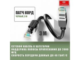 Патч-корд UTP, сетевой кабель с разъемом RJ-45, LAN витая пара Cat8, для подключения устройств к интернету, роутеру, маршрутизатору, 3м, Черный 102227436254