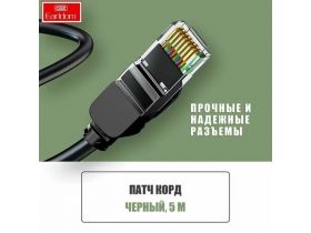 Патч-корд UTP, сетевой кабель с разъемом RJ-45, LAN витая пара Cat8, для подключения устройств к интернету, роутеру, маршрутизатору, 5м, Черный 102227383530