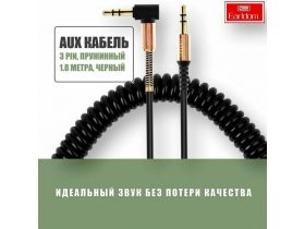 Aux кабель Jack 3.5mm 3 pin угловой Г-образный пружинный 1,8м / Earldom AUX23 / аукс кабель в машину, для наушников, аудио кабель Джек 3.5мм, Черный 102224832236