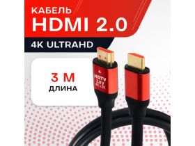 Кабель аудио видео HDMI 2.0 цифровой FullHD, 2K, 4K / 3 метра / черно-красный 102676025458