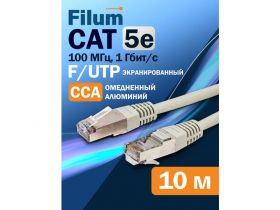 Кабель патч-корд F/UTP 5e кат. 10м Filum FL-F5-10M 26AWG(7x0.16 мм), омедненный алюминий (CCA), PVC, серый 101801832531