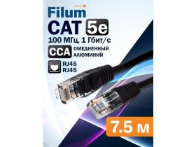 Кабель патч-корд U/UTP 5e кат. 7.5м Filum FL-U5-7.5M-BK 26AWG(7x0.16 мм), омедненный алюминий (CCA), PVC, чёрный 101802056315