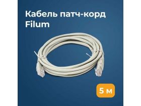 Патч-корд U/UTP 5e кат. 5м Filum FL-U5-C-5M 26AWG(7x0.16 мм), кабель для интернета, чистая медь, PVC, серый 101802056022