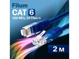 Кабель патч-корд U/UTP 6 кат. 2м Filum FL-U6-2M-BL 26AWG(7x0.16 мм), омедненный алюминий (CCA), PVC, синий 101802042836