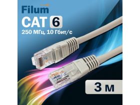 Кабель патч-корд U/UTP 6 кат. 3м Filum FL-U6-3M 26AWG(7x0.16 мм), омедненный алюминий (CCA), PVC, серый 101740893617