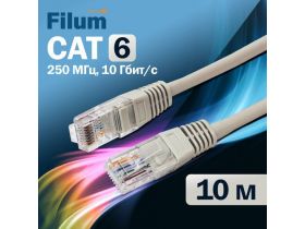 Кабель патч-корд U/UTP 6 кат. 10м Filum FL-U6-10M 26AWG(7x0.16 мм), омедненный алюминий (CCA), PVC, серый 101740893612