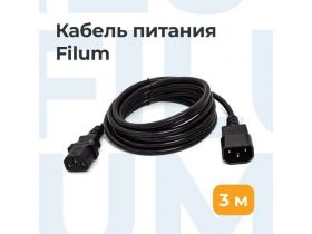 Кабель питания Filum FL-PC6-C13-C14-3M С13- C14, 3х0.5мм², 220В, 6A, чёрный, 3м 101740893704