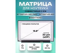 Матрица для ноутбука 15.6" коннектор 30 pin (eDP) 1920x1080 (FHD) TN глянцевая без креплений 35cm 103807320265