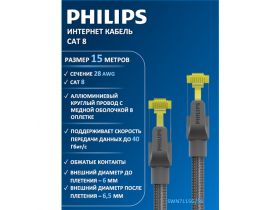 Интернет кабель/патч-корд Philips CAT.8 SWN7115G/56, плетённый, 28AWG, 15 м 4361966420