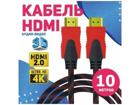 Кабель аудио видео HDMI М-М 10 м 1080 FullHD 4K UltraHD провод HDMI / Кабель hdmi 2.0 цифровой / черно-красный 101933310738