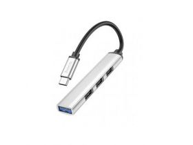 HUB адаптер Hoco HB26 4 in1, Type-C to USB3.0 + USB2.0*3, металлический корпус,13 см кабель, Серебристый 101984822859