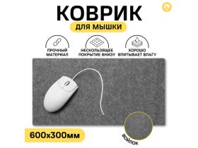 Коврик для мыши, войлок, 60 см x 30 см, противоскользящий, серый 103652121941
