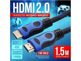 Кабель HDMI М-М 1.5 метра аудио видео 1080 FullHD 4K UltraHD провод HDMI (Кабель hdmi 2.0 цифровой) черно-синий 19510692