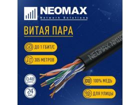 Кабель NEOMAX [NM711032] U/UTP cat.5e 4x2x0.46, 25 AWG, Медь, внешний, PE, 305м, черный; Fluke Tested 102063541906