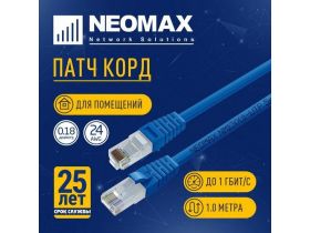 Neomax Неомакс Патч-корды NM13001-010B Шнур коммут. UTP 1 м, cat.5е, синий, многожильный 103752272355
