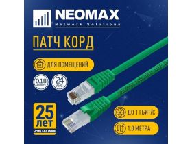Neomax Неомакс Патч-корды NM13001-010G Шнур коммут. UTP 1 м, cat.5е, зеленый, многожильный 103752272356