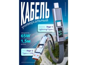 Кабель для мобильных устройств 4-в-1 с дисплеем, длина 1.5 м, цвет серый 4349971513