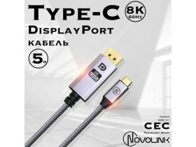 Кабель Type-C - Displayport, 60Hz/8K, Displayport1.4 плетеный, 5 метров 103014505347