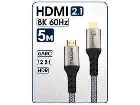 Кабель HDMI 2.1 8К 60 Гц / 4К 120 Гц, длина 5 метров, тканевая оплетка, поддержка HDR, ARC 102861212452