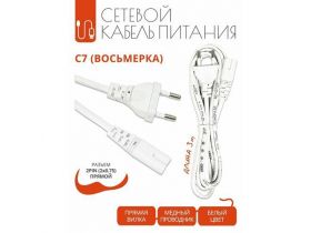Кабель питания C7 (восьмерка) с прямым разъемом 2x0.75 мм, белый, 3 метра 103126891304