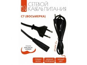 Кабель питания C7 (восьмерка) с прямым разъемом 2x0.75 мм, 2 метра 103126878304