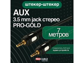AUX - JACK 3.5 мм PRO-GOLD 7 м. Шнур аудио AUX - JACK 3.5 мм штекер-штекер стерео PRO-GOLD 7 метров 102953278027