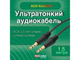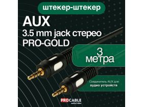 AUX - JACK 3.5 мм PRO-GOLD 3 м. Шнур аудио AUX - JACK 3.5 мм штекер-штекер стерео PRO-GOLD 3 метра 102953278024