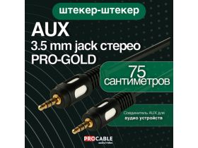 AUX - JACK 3.5 мм PRO-GOLD 75 см. Шнур аудио AUX - JACK 3.5 мм штекер-штекер стерео PRO-GOLD 75 сантиметров 102953279046