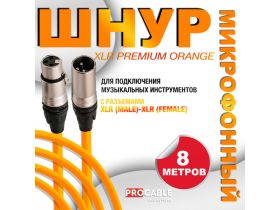 XLR PREMIUM ORANGE 8 м. Микрофонный шнур XLR PREMIUM ORANGE (штекер-гнездо) OD 6.5 mm 8 метров 103583928138