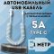 Автомобильный витой кабель USB - TYPE C. Зарядка для телефона в машину 1м. Черный. 102968400814
