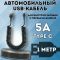 Автомобильный витой кабель USB - TYPE C. Зарядка для телефона в машину 1.5м. Черный. 102968399393