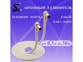 Кабель антенный телевизионный 12 м. папа (угловой)-мама (угловой) белый. Кабель удлинительный. Кабель розетка-телевизор. Штекер-Гнездо. 103589512505