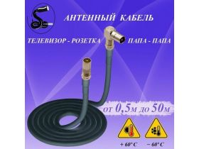 Кабель антенный телевизионный 17 м. папа (прямой)-папа (угловой). Чёрный. Кабель для улицы. Кабель соединительный. Кабель розетка-телевизор. Штекер-Штекер. 103589510630
