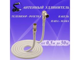 Кабель антенный телевизионный 17 м. папа (прямой)-мама (угловой) белый. Кабель удлинительный. Кабель розетка-телевизор. Штекер-Гнездо. 103589511075