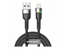 Rexant кабели 18-7059 Кабель USB-A – Lightning для Apple, 2,4А, 1м, в черной нейлоновой оплетке, с LED подсветкой 103241539909