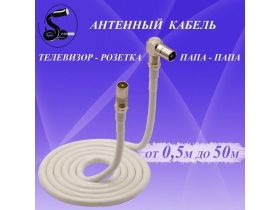 Кабель антенный телевизионный 5 м. папа (прямой)-папа (угловой) белый. Кабель розетка-телевизор. Штекер-штекер. 103589512458