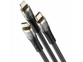 Кабель Rock 3в1 USB USB Type C microUSB Lightning с быстрой зарядкой 6A 100W прозрачный штекер 150 см. серый 103610299324