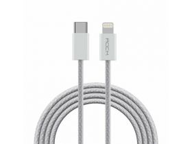 Кабель зарядный ROCK USB-C to Lightning, в нейлоновой оплётке, с быстрой передачей данных, 3A, 100 см. серый 4440127396