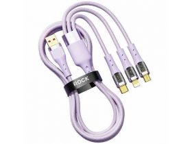 Кабель Rock 3в1 USB USB Type C microUSB Lightning с быстрой зарядкой 6A 100W прозрачный штекер 150 см. пурпурный 103610669999