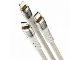 Зарядный кабель в нейлоновой оплетке 3 в 2 ROCK G20 Transparency Series 3 in 2 Multifunctional Fast Charging Cable USB-C, Micro Usb, Lightning - USB-C, USB A 150 см. бежевый 103610669982