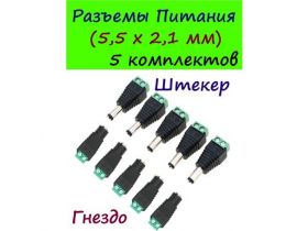 Разъем питания DC 2.1х5.5 штекер + гнездо ("папа" + "мама") - 5 комплектов 101804611877