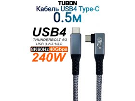 Кабель TUBON USB4 Type-C L - Type-C USBC Thunderbolt 4 40Gb 240W 8K UU03 0.5м 102996499510