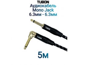 Кабель TUBON Моно 6.3 мм jack (M) L Угловой - 6.3 мм jack (M) Моно OD6.0 Тканевая оплетка J004 5м 4482894242