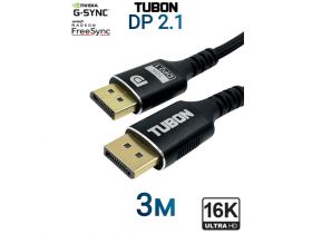 Кабель TUBON DisplayPort - DisplayPort 2.1 16К/60HZ, 8K/120Hz, 4k/240Hz, HDR OD6.0 DD06 3м 103629100078