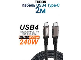 Кабель TUBON USB4 Type-C - Type-C USBC Thunderbolt 4 40Gb 240W 8K UU08 2м 103566618209