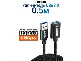 Кабель TUBON Удлинитель USB AM - USB AF 3.0 Тканевая оплётка US03 0.5м 103566654586