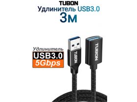 Кабель TUBON Удлинитель USB AM - USB AF 3.0 Тканевая оплётка US03 3м 103566654585