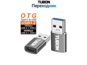 Переходник адаптер OTG TUBON USB3.2 USB - Type-C 10Gbps/480Mbps 60W AUS02 Серый 103630973212